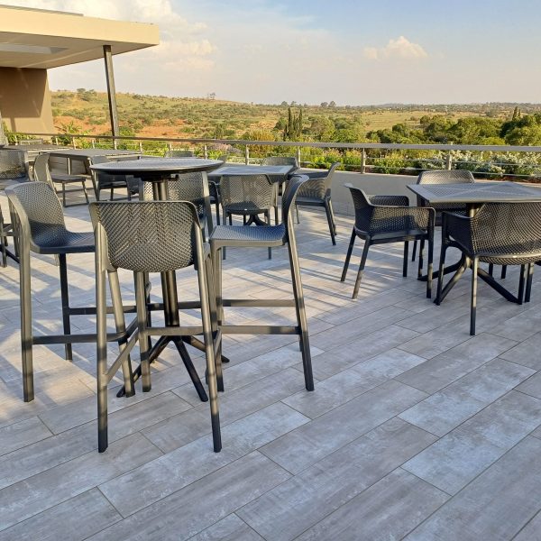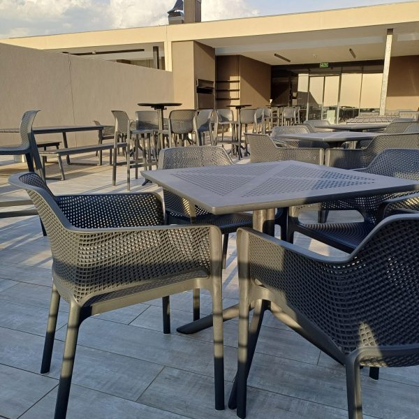 We are excited to present a perfect pairing of style and functionality! The Net Armchair is beautifully matched with the Clip 80 Table, both in sleek anthracite grey, creating a sophisticated and harmonious look. Additionally, the Net Barstools are complemented by the Sky Bar Table, also in anthracite grey, delivering a cohesive and modern aesthetic ideal for any space. Explore the seamless blend of design and comfort with these stun -ing combinations!