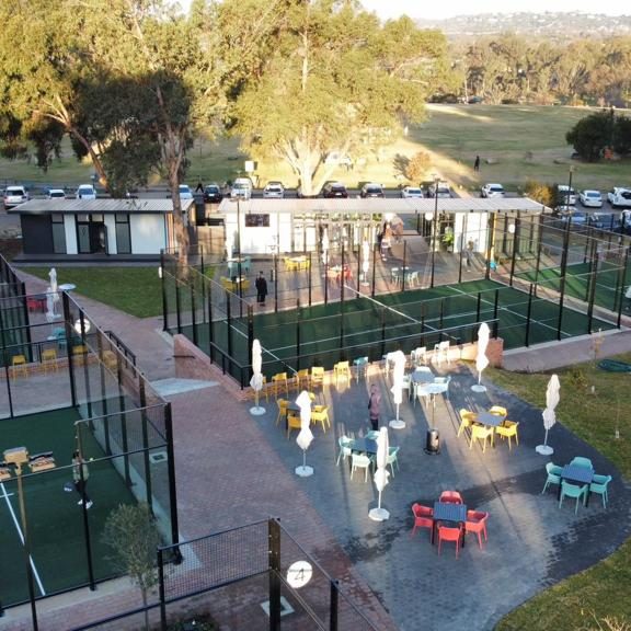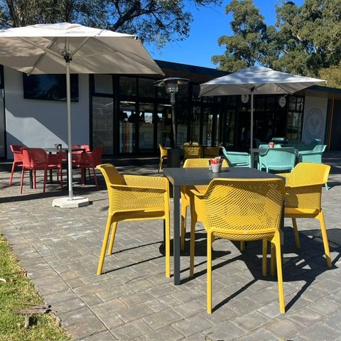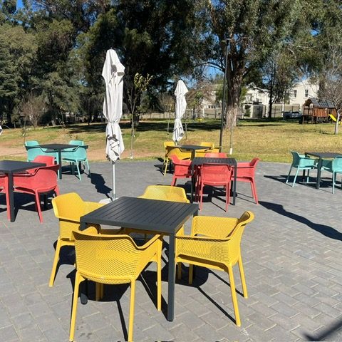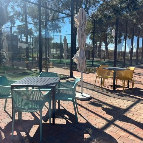 Outdoor Seating- This beautiful display of pastel colours, are used by the Padel and Social Club in Melrose.