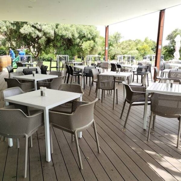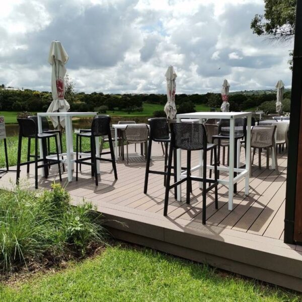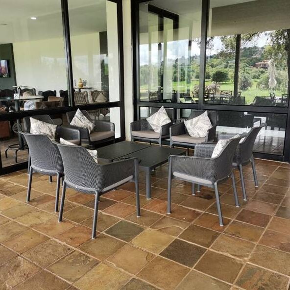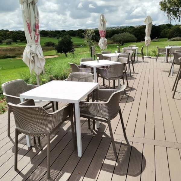 | This incredible installation was done at Woodlands Golf Estate. The Nardi Range was used, Net H75 Barstool in Anthracite Grey, the Net Armchair in Taupe, the Net Relax Armchair in Anthracite Grey, Cube80 Table and Cube70 Bartable all in white. |